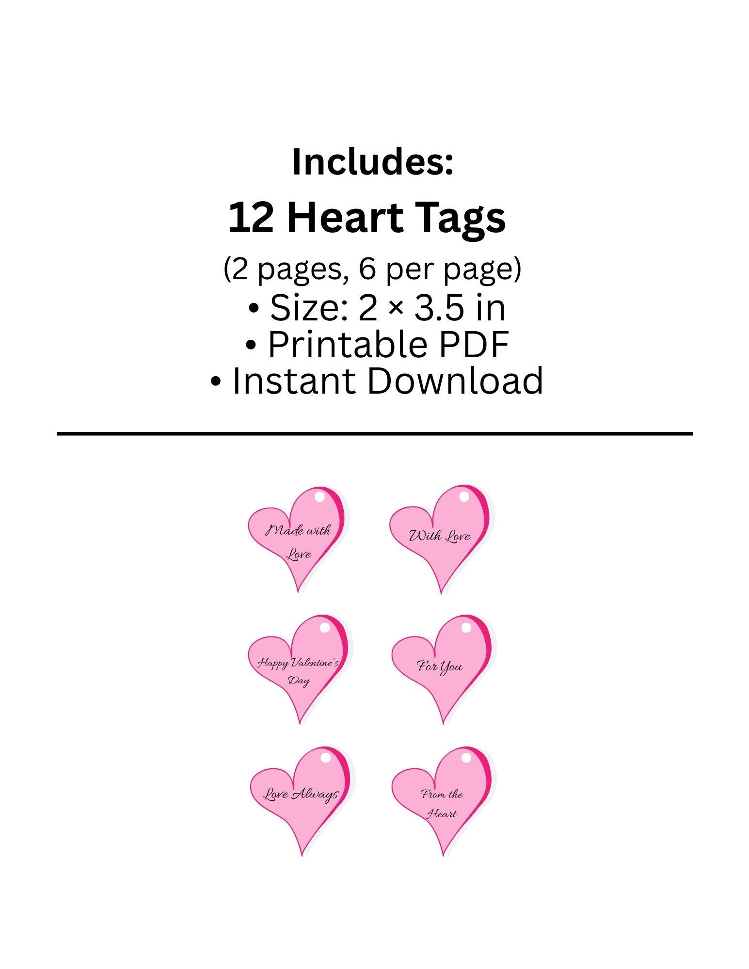 Add a beautiful finishing touch to your Valentine gifts with this printable heart gift tag bundle. This set includes 12 unique heart-themed designs sized at 2 x 3.5 inches — perfect for gifting, party favors, classroom treats, and small business packaging.