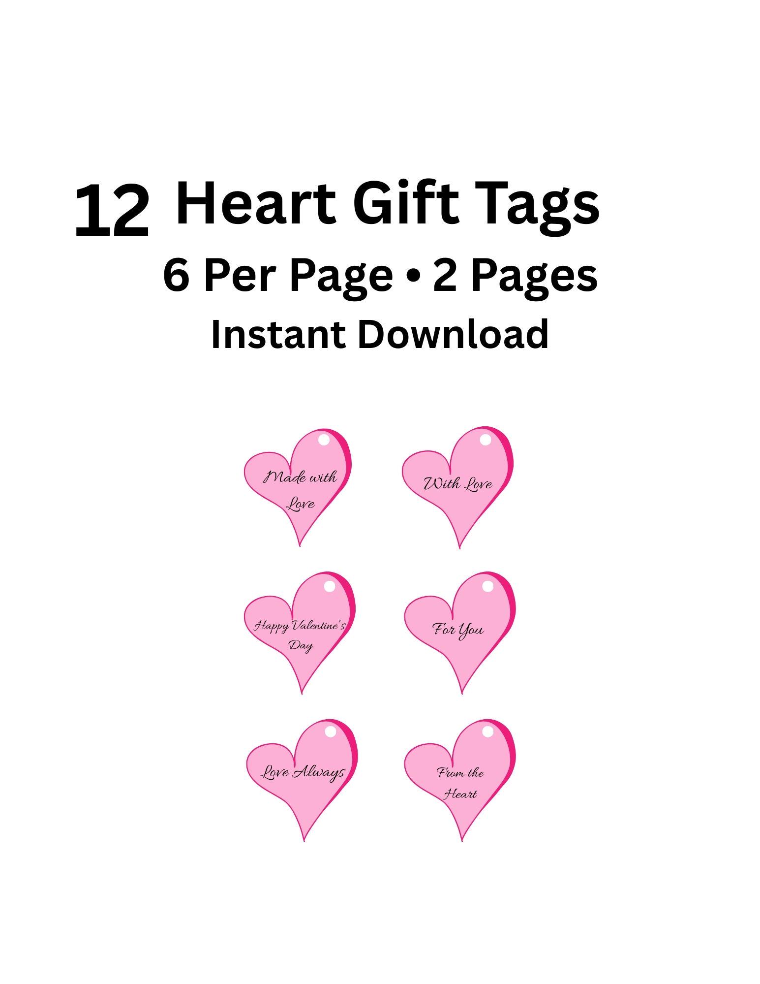 Printable Heart Gift Tags – 12 Designs | Instant Download