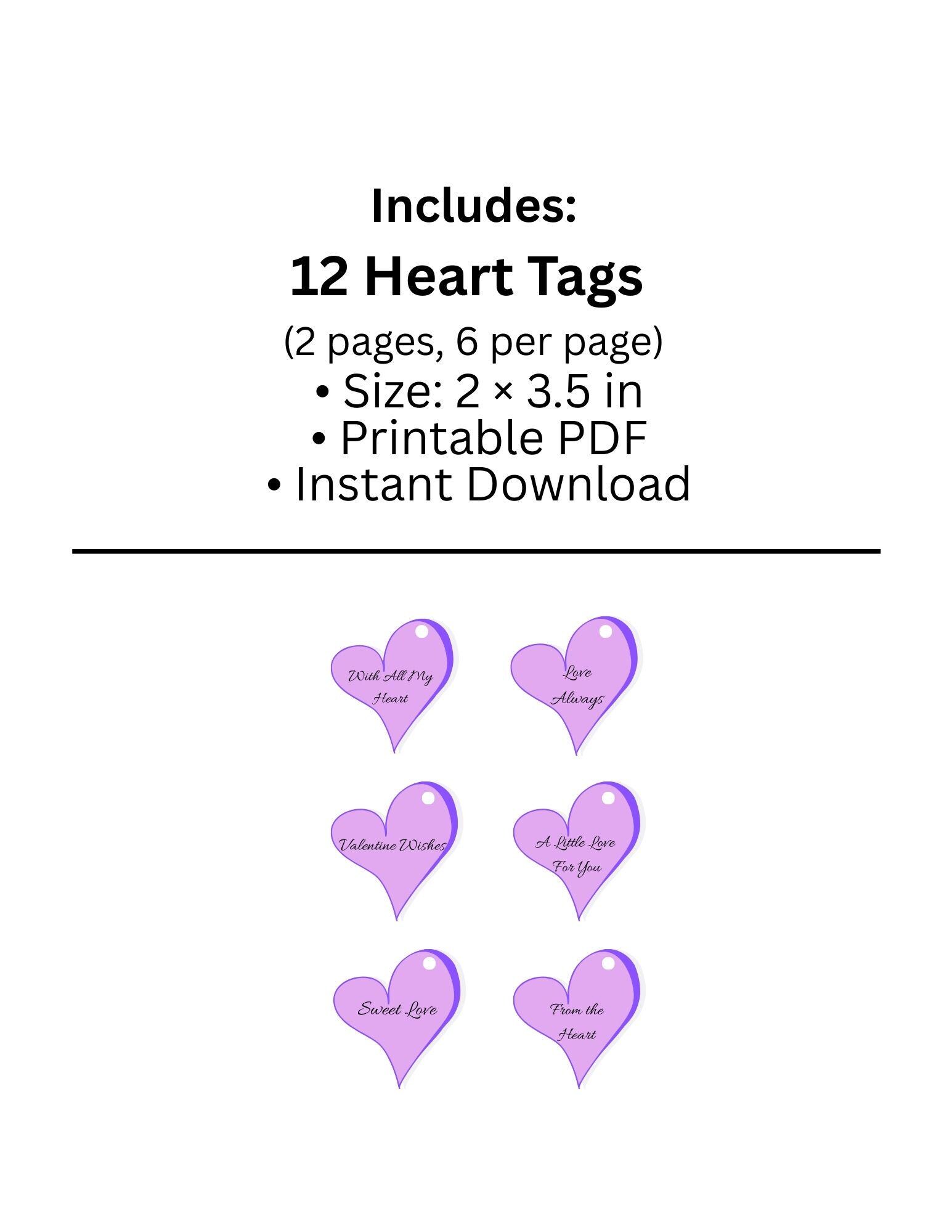 Add a beautiful finishing touch to your Valentine gifts with this printable heart gift tag bundle. This set includes 12 unique heart-themed designs sized at 2 x 3.5 inches — perfect for gifting, party favors, classroom treats, and small business packaging.