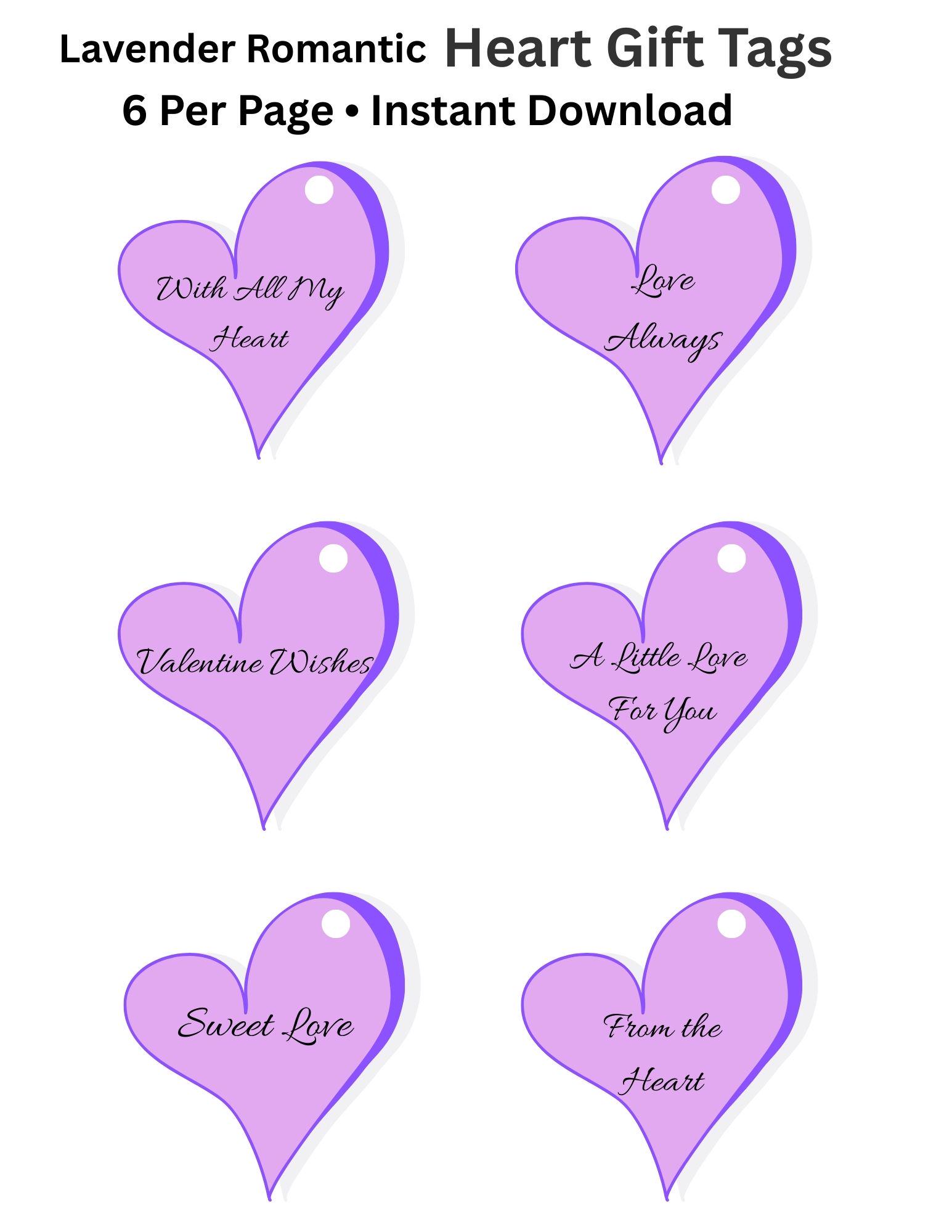 Lavender Heart Gift Tags Printable | 12 Designs | 2x3.5 Inch | Instant Download