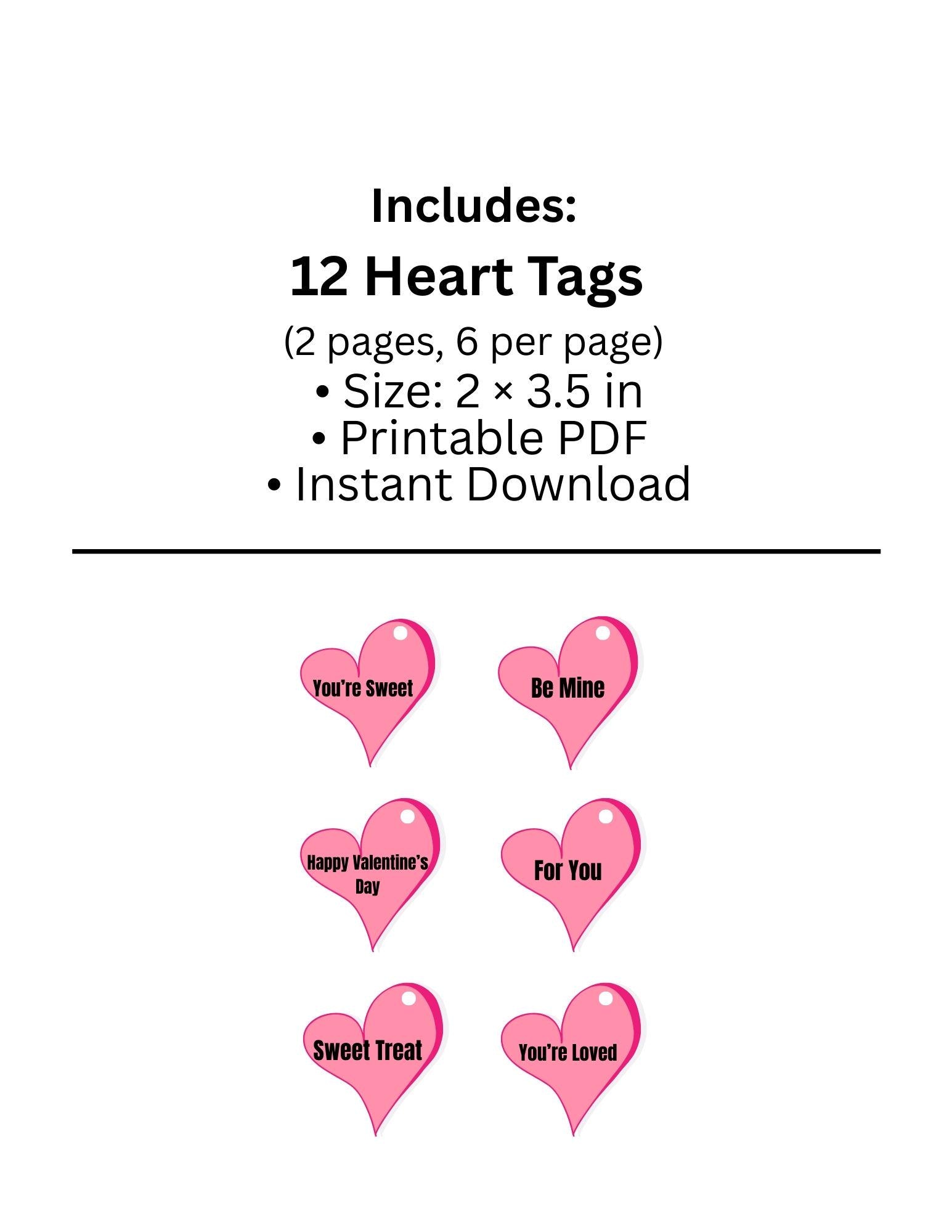 Add a beautiful finishing touch to your Valentine gifts with this printable heart gift tag bundle. This set includes 12 unique heart-themed designs sized at 2 x 3.5 inches — perfect for gifting, party favors, classroom treats, Classroom Valentine exchanges, & school treat bags