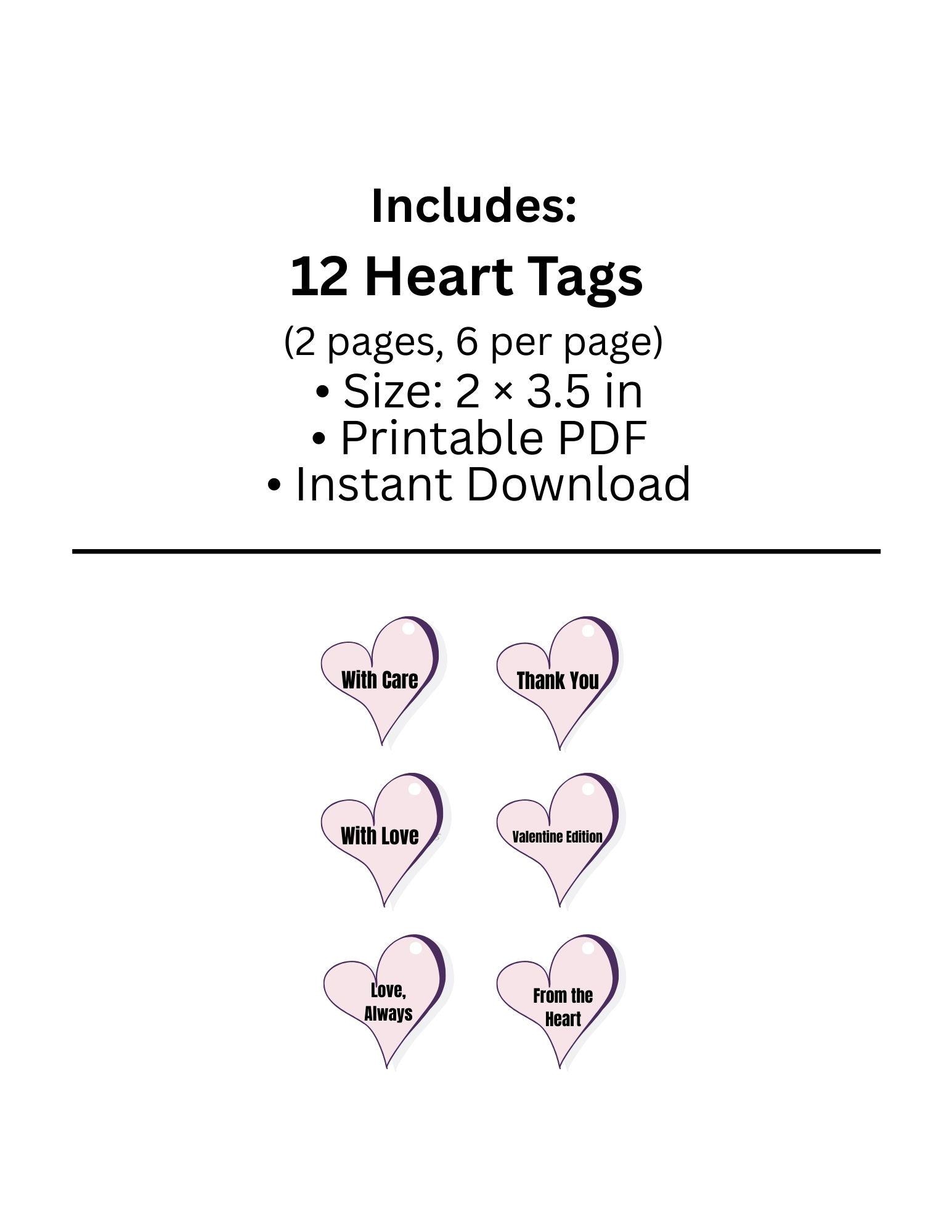 Add a beautiful finishing touch to your Valentine gifts with this printable heart gift tag bundle. This set includes 12 unique heart-themed designs sized at 2 x 3.5 inches — perfect for Small business packaging, Neutral gift wrapping, Minimal aesthetic gifts