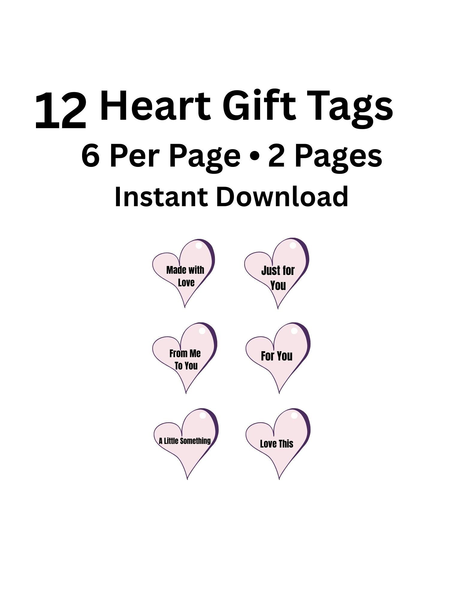 Printable Heart Gift Tags – 12 Designs | Instant Download