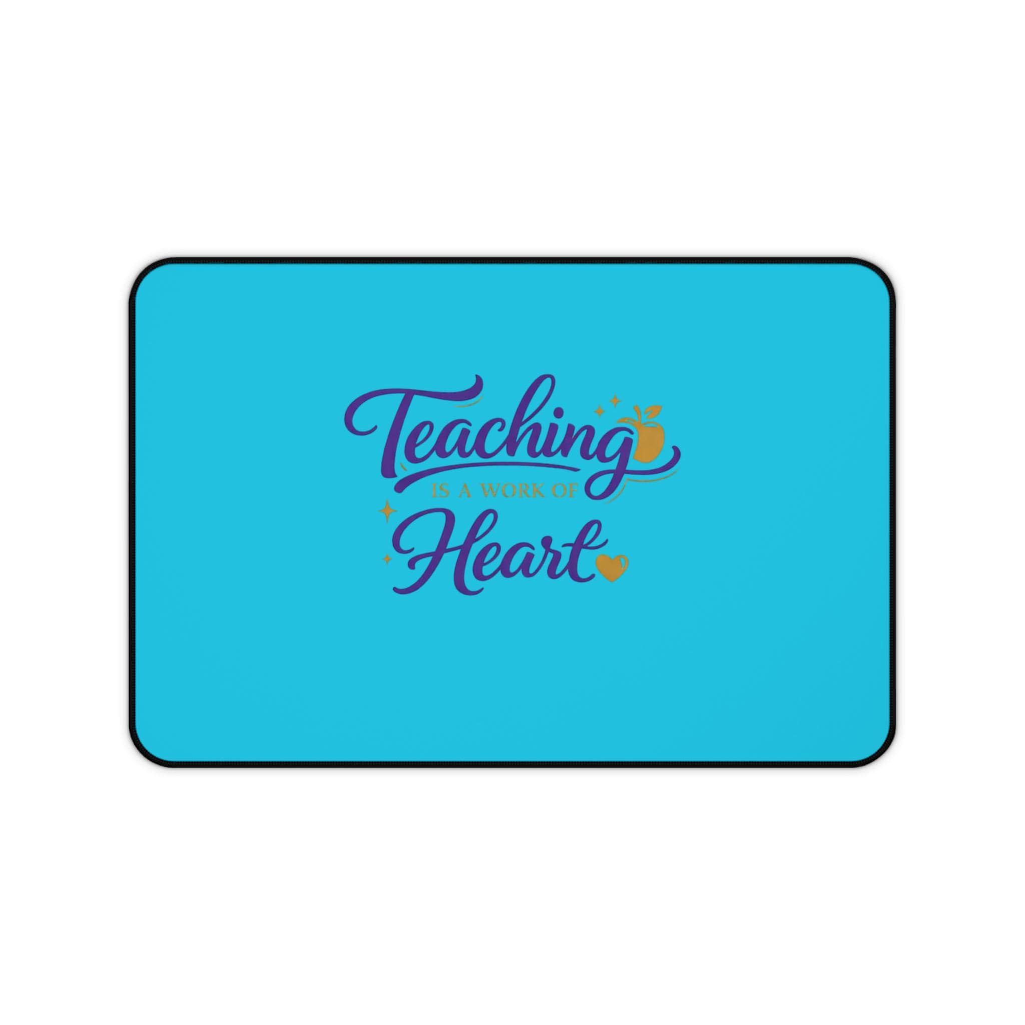 A bright, durable desk mat made to bring warmth and purpose to any teacher’s workspace. The smooth neoprene surface showcases crisp, vibrant printing with a cheerful “Teaching Heart” design on a calming turquoise background. Hemmed edges and an anti-slip backing keep the mat looking sharp and steady through daily lessons, grading sessions, and creative projects. Available in three sizes to fit busy desks or cozy corners, it’s a supportive layer for writing, typing, or crafting while adding a touch of heartfelt personality to the room.